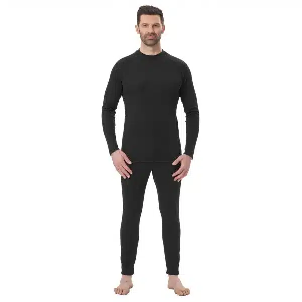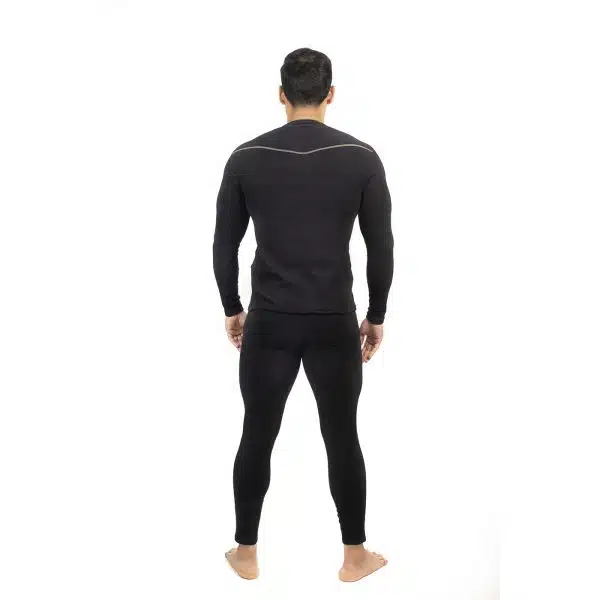 Pack térmico de camiseta + pantalón + braga de cuello. Set térmico primera capa o capa base, ergonómica y muy cálida adecuada para actividades LABORALES y DEPORTIVAS en climas realmente frías de montañas, nieve, sierra y alturas; capa base elástica y absorbente de humedad para los días más fríos. El tejido interior forma pequeños espacios vacíos que atrapan el aire para un mejor aislamiento, lo que la convierte en una de nuestras mejores capas para mantenerlo seco y abrigado.