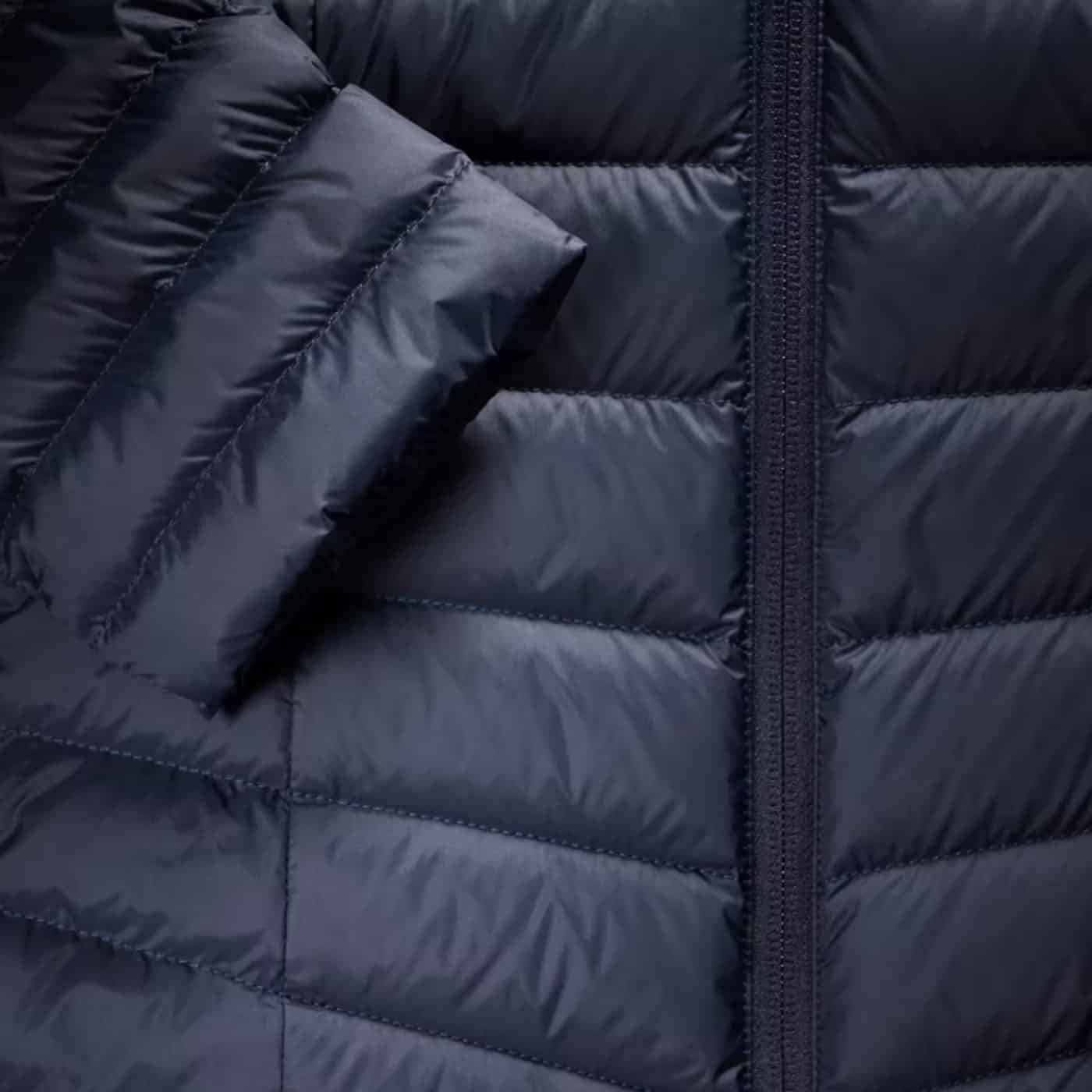 - Tejido principal: 100 % Poliamida. Relleno: 2 % Poliéster, 10 % Pluma de pato gris, 88 % Plumón de pato gris.