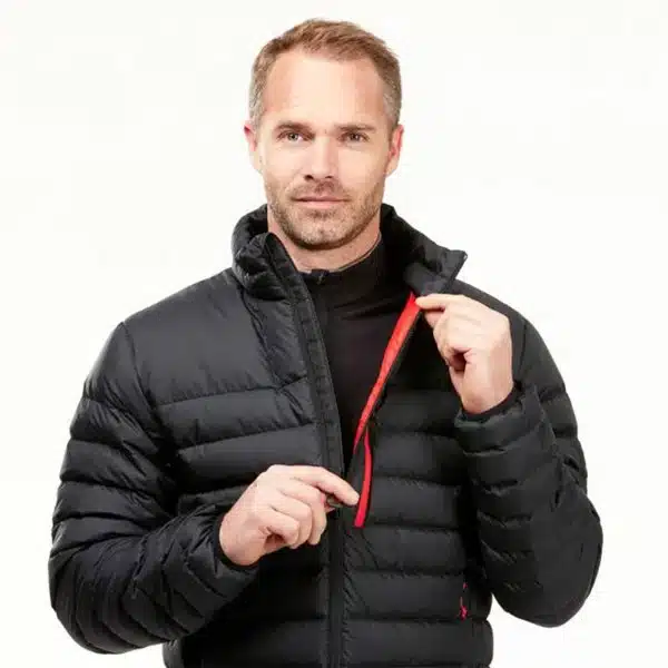 * Cremallera impermeable, mangas articuladas, cuello alto.