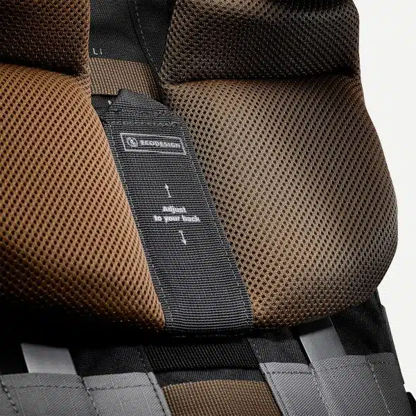* La estructura de la espada presenta un marco reforzado con una malla que limita el apoyo y deja transpirar la espalda.