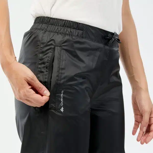 Los pantalones impermeables Quechua o sobrepantalón incluyen una cremallera en la parte inferior de las piernas para facilitar su colocación incluso con el calzado puesto. Además, son comprimibles, lo que los hace ideales para llevar en tu mochila sin ocupar mucho espacio. Estos pantalones impermeables o sobre pantalones son ligeros y transpirables, diseñados para proporcionarte protección contra la lluvia o el polvo durante tus travesías. Son especialmente adecuados para los días de lluvia y aguaceros tropicales. Te recomendamos llevar también la Chaqueta Compacta Impermeable para proteger la parte superior de tu cuerpo.