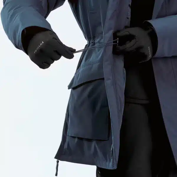 * Capucha antiventisca (forro de piel sintética), manguitos, ajuste en la cintura.